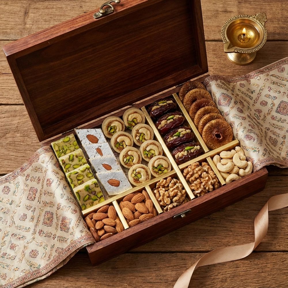 Festive Hampers: Customizable mithai gift boxes and sweet hampers for weddings, pujas, festivals and corporate gifting.